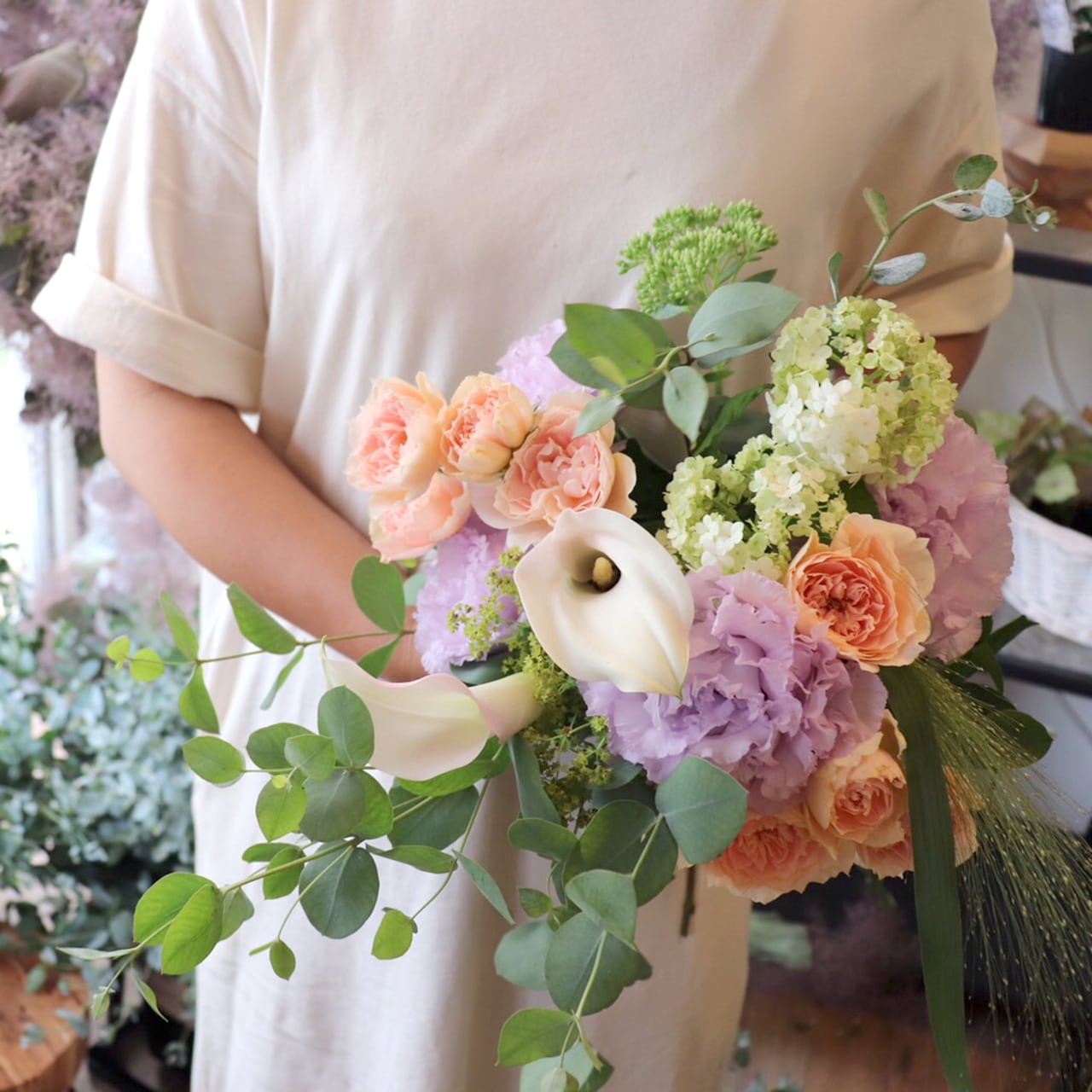 季節に合わせたブーケでアレンジメントをおつくりします。